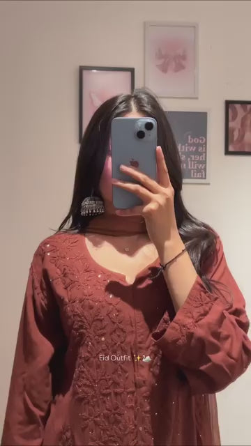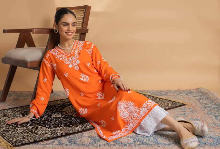 Sold outViscose dyeable 3d work kurti set