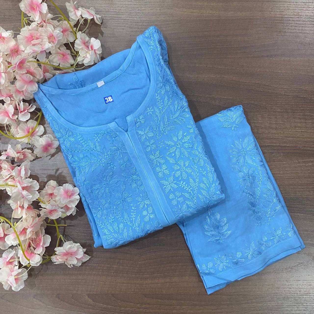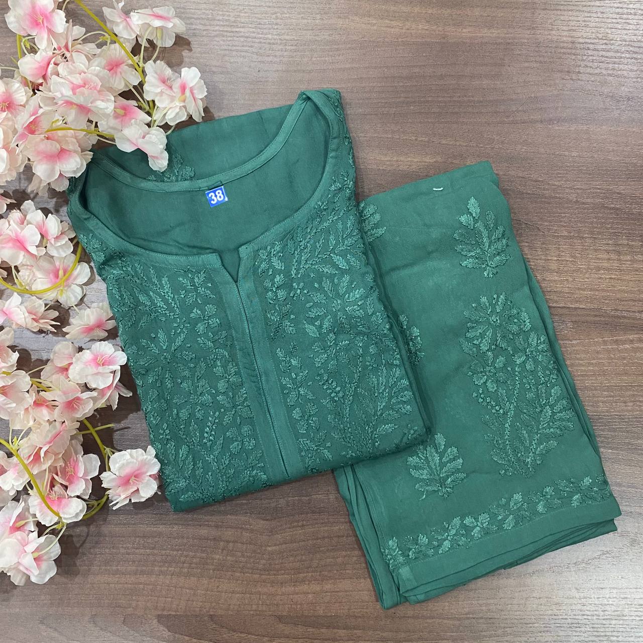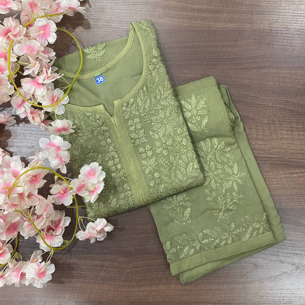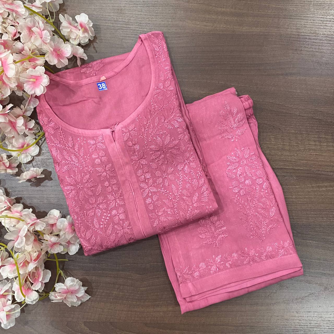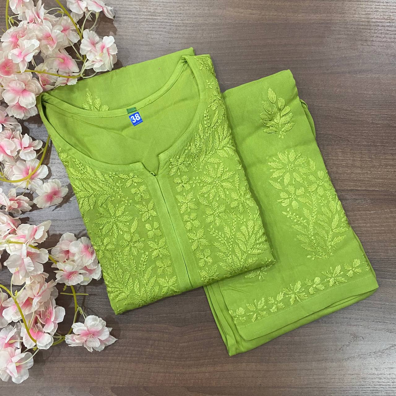 🌸 Beautiful reyon sets tone to tone with fine chikankari
