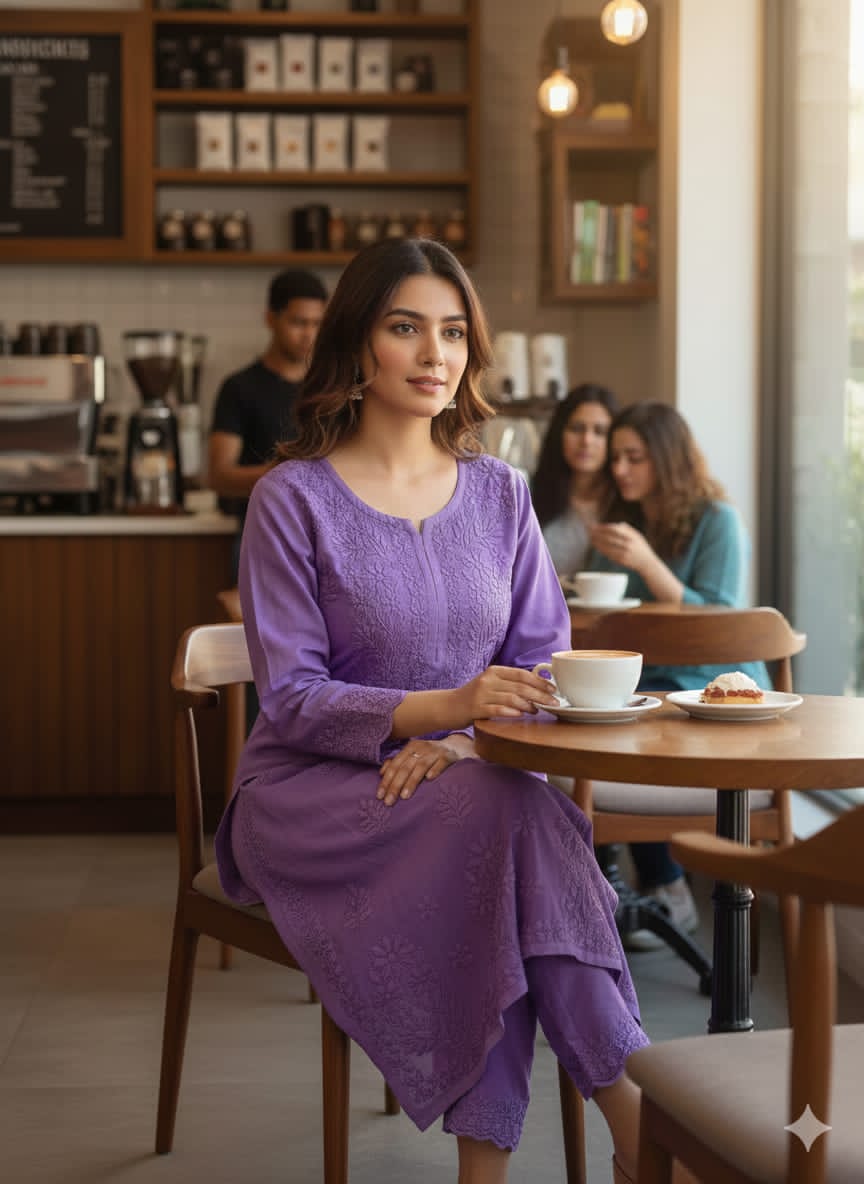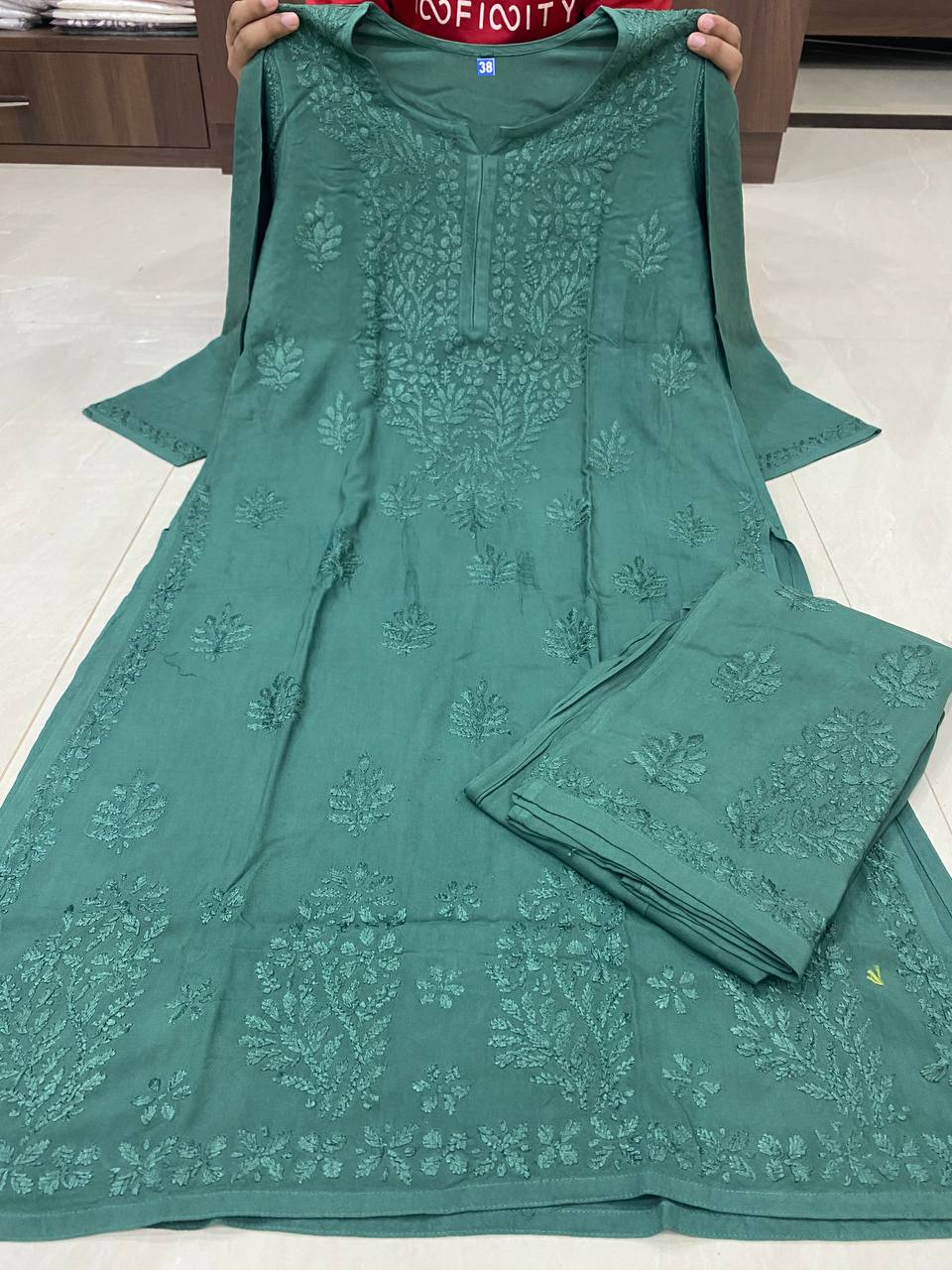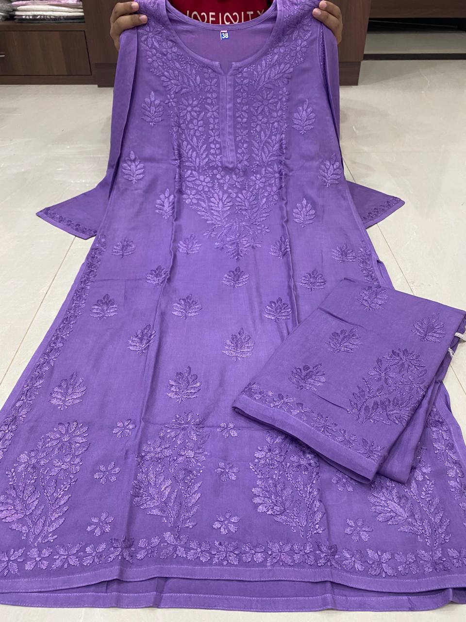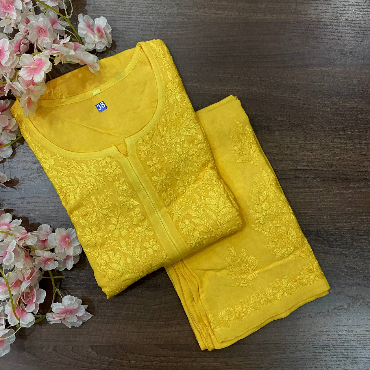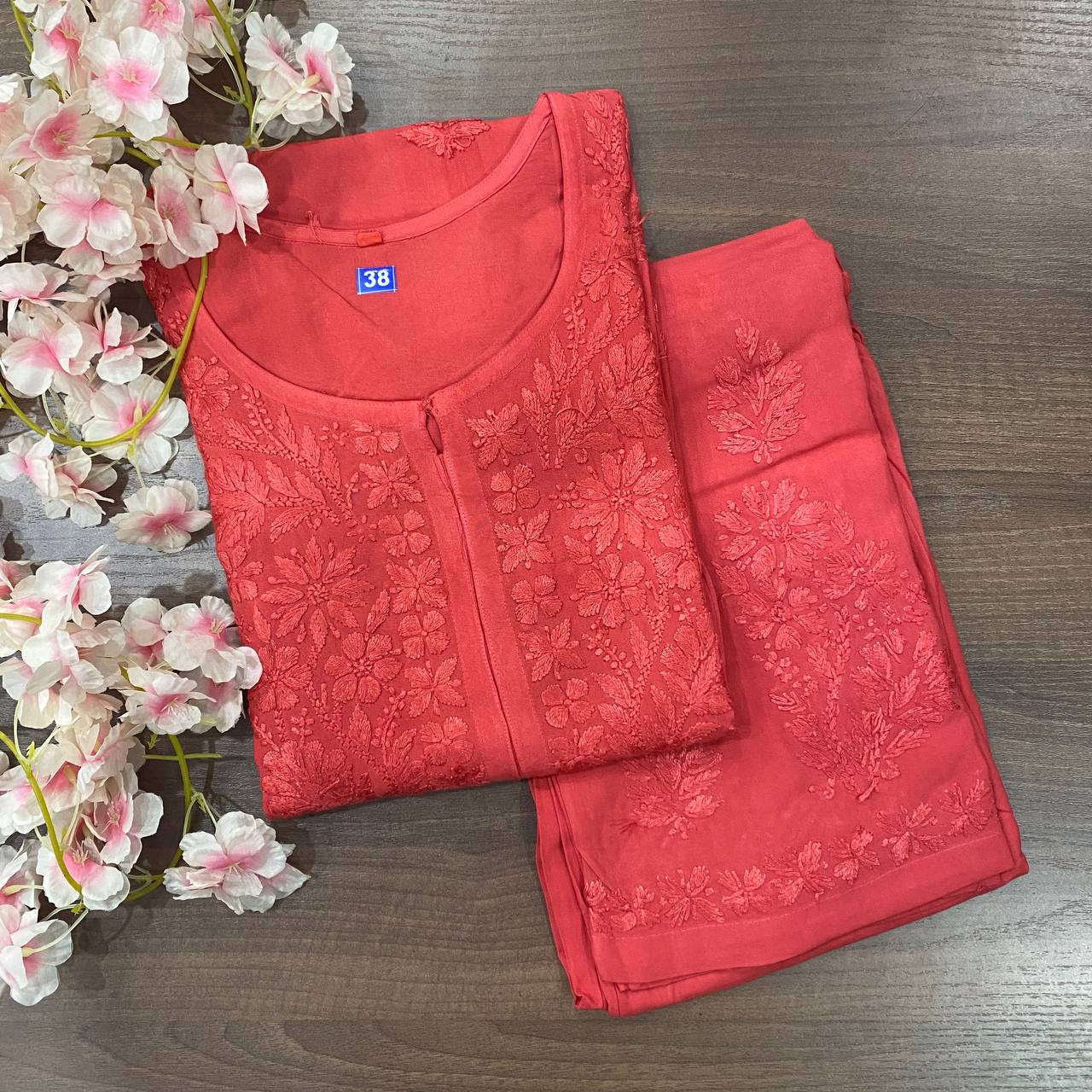 🌸 Beautiful reyon sets tone to tone with fine chikankari